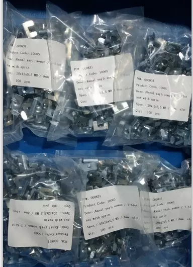آجیل: مهره چکش؛ مهره T شکاف رول با توپ لود شده بهار؛ گردوی شکافدار غلتکی با برگ بهاری؛ مهره رامبوس؛ مهره مربع ، مهره فلنج و غیره